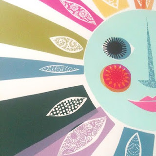 New prints ahoy ! I m taking part in the marvellous print festival,Printfest,in the lake district during the May Bank Holiday weekend.I ve been working on new work for this event and i had in mind a sun;a lovely vintagey childrens book from the 1950s /1960s and this is the result.I love it.my kids think it s scary !